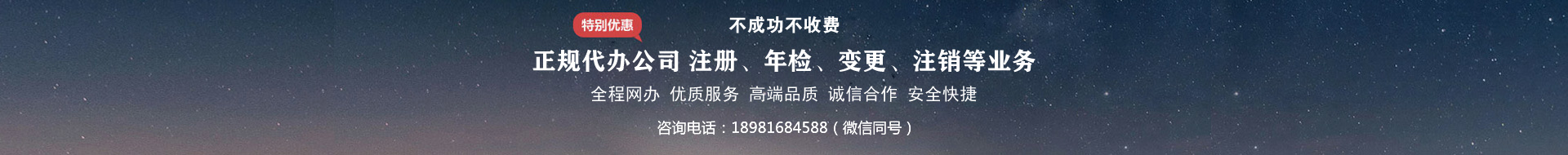 公司服务项目:公司注册、税务申报、代理记账、商标注册、各类资质许可证、网站建设等!手机:18981684588(微信同号)